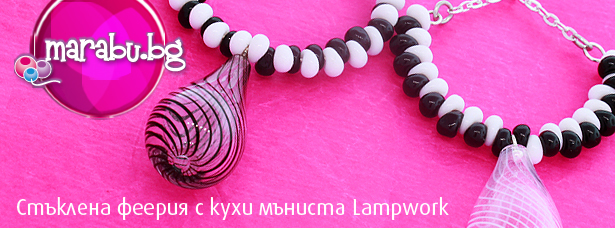 Кухо овално мънисто аквамарин на черни вълни 14х8мм (1бр)