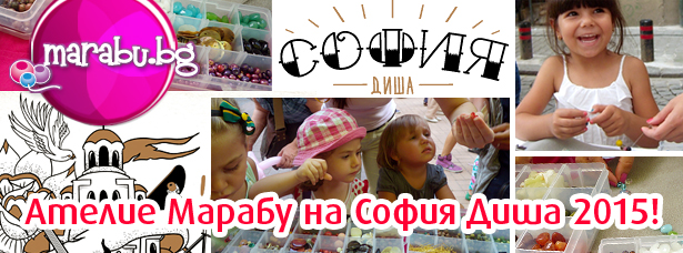 София Диша през август! И през 2015 година цветният фестивал за изкуство и култура ще изпъстри няколко софийски улици и ще съживи желанието за творчество. Ателие Марабу също ще бъде там със своята кипяща работилница. Момичета и момчета от различни възрасти ще могат да се превърнат в дизайнери на своите нови уникални бижута. На разположение е богата палитра от стъклени мъниста и полускъпоценни камъни от каталога на marabu.bg. Всяка неделя ще правим и любопитни демонстрации в темите на фестивала. Тази седмица сме на улица Пиротска! Заповядайте :)