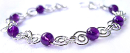 Тази гривна от сребърна тел и мъниста от аметист е едно семпло ежедневно бижу.