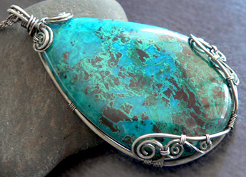Най-добрият начин да подчертаете красотата на своя полускъпоценен камък е да го "облечете" в специални одежди. Тук на помощ отново се притича бижутерийната тел. Започнете с изработката на обков от няколко нишки сребърна тел, който подчертава формата на полускъпоценния камък, като следва нейните извивки, без да добавя сложни елементи. Така по-лесно ще усъвършенствате уменията си и ще постигнете неповторим резултат без да се налага да се мъчите с дни.