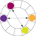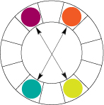 Тези схеми за комбиниране на цветовете също се основават на разположението на цветовете върху колелото. Те залагат на симетричното положение на цветовете. При тетрадичната се вземат два цвята, които не са съседни и се свързват със срещулежащите им два цвята. Или по-просто казано тетрадичната схема се състои две двойки противоположни цвята. Тя дава възможност за най-голямо разнообразие на цветове, но също така е доста трудна за балансиране. При нея е за предпочитане един от цветовете да доминира, а другите да се използват в по-малки количества като допълнение.