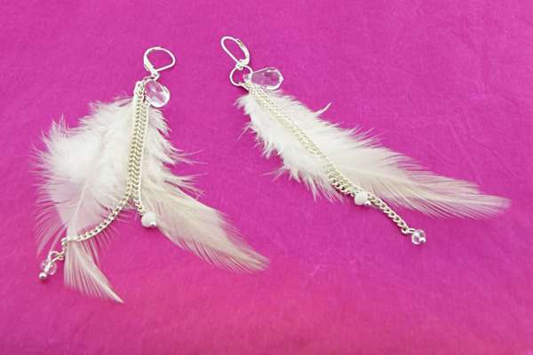 Тези нежни и ефирни обеци от пера, циркони и кристални висулки Сваровски можете да направите и сами с лекотата, с която птиците се реят в небето...