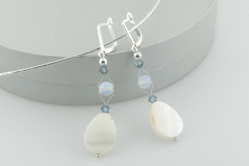 Тези обеци от опал, кристали Сваровски и седеф изглеждат сложни за изработка, но всъщност отнемат замо няколко минути - опитайте и ще се убедите сами...