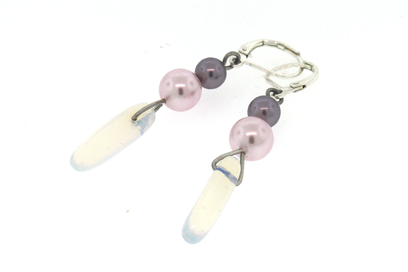 1. На телче с уше нанижете 1 морава перла Сваровски, а след нея и 1 перла Сваровски розалин.