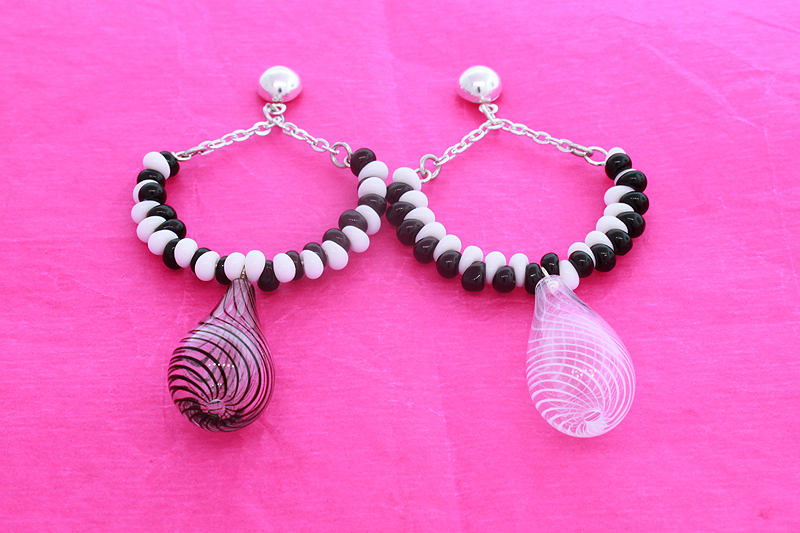 6. Повторете за втората обица, но нижете мънистата Магатама в обратен ред – от бяло към черно и от черно към бяло.