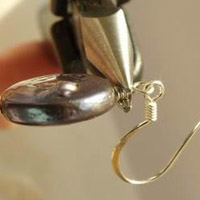 Извадете клещите от така оформената примка и нанижете съответния аксесоар, който ще използвате (кукички за обици, халкички, верижка или друг метален елемент). Хванете образувалата се примка с клещите с плоски челюсти по начина показана на снимката.