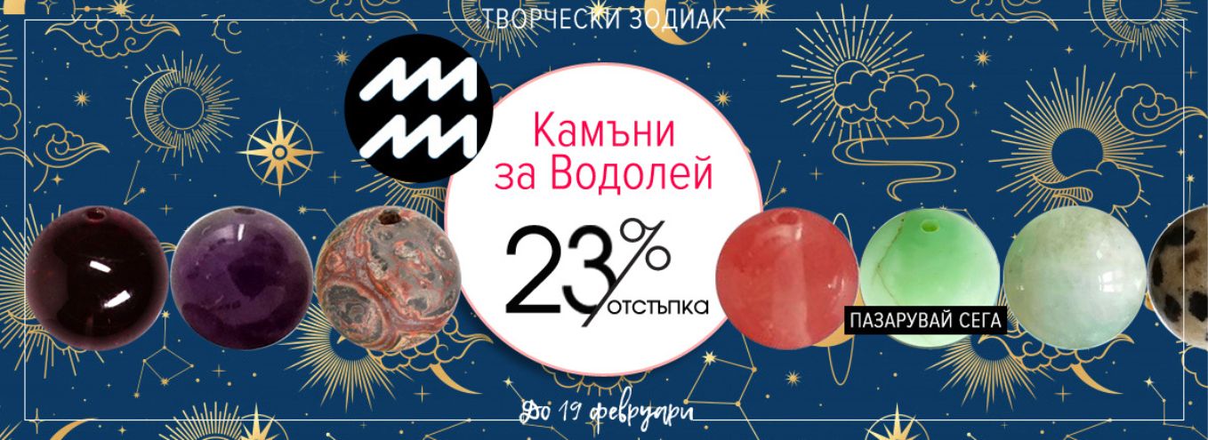 Творчески зодиак е категория със специално избрани естествени камъни, според настоящата за месеца зодия. Тук ще ги откриете с изкушаващо намаление от 23%.